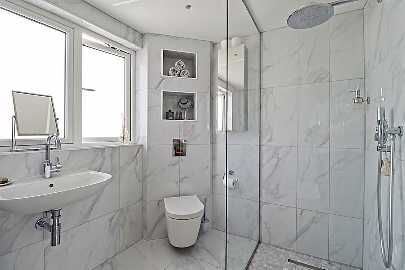Obscure double glazed window to front aspect, freestanding bath, fitted hand basin, low level WC, tiled flooring with underfloor heating, complimentary tiling to walls with niches, smooth ceiling incorporating downlights, dual fuel stainless steel towel rail.