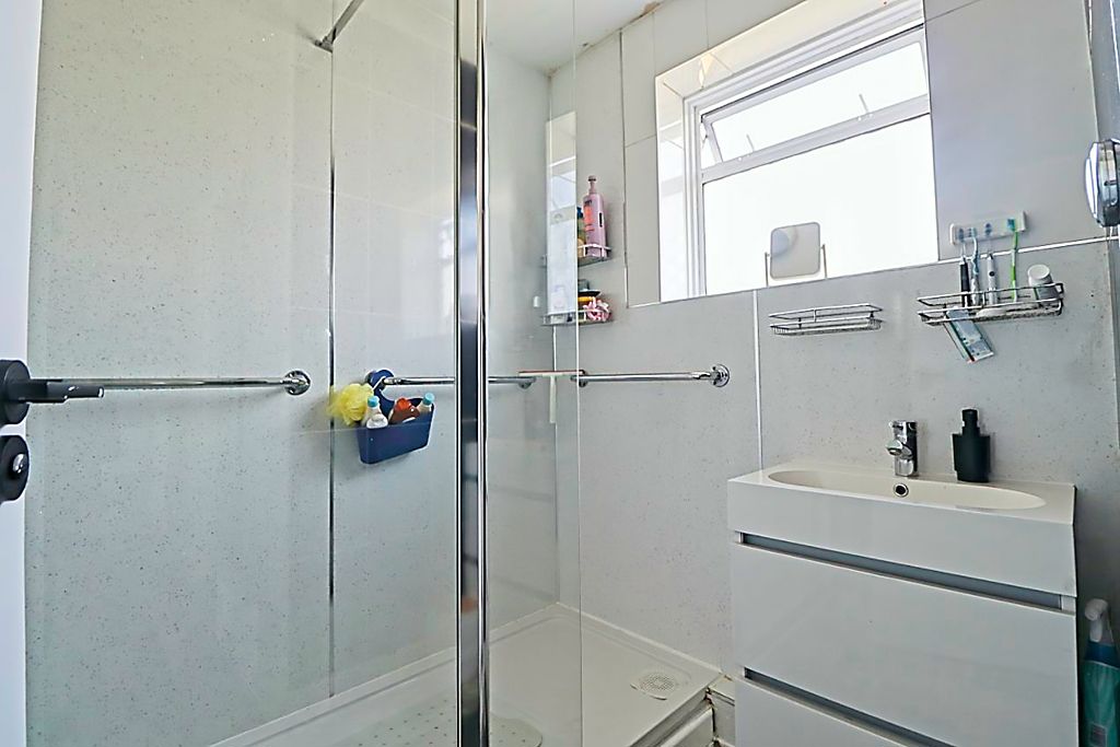Obscure double glazed window to front aspect, double shower cubicle with raised shower system, vanity hand basin, wood effect laminate flooring, smooth ceiling.