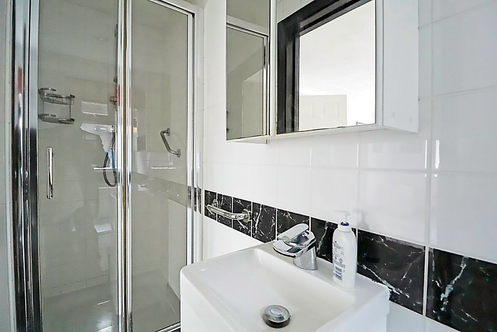 Obscure double glazed window to side aspect, low level WC, vanity hand basin, shower cubicle, tiled walls & flooring.