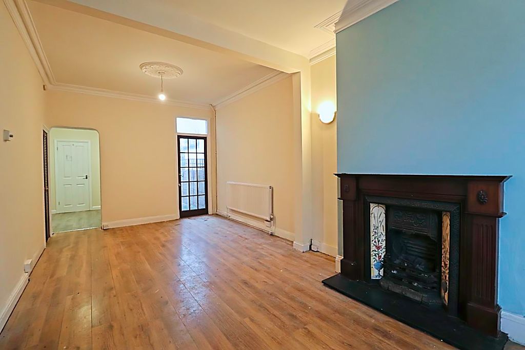 Double glazed bay window to front aspect, glazed panelled door to rear garden, feature fireplace, radiator, understairs storage area, coving to ceiling, wood effect laminate flooring, opens to: