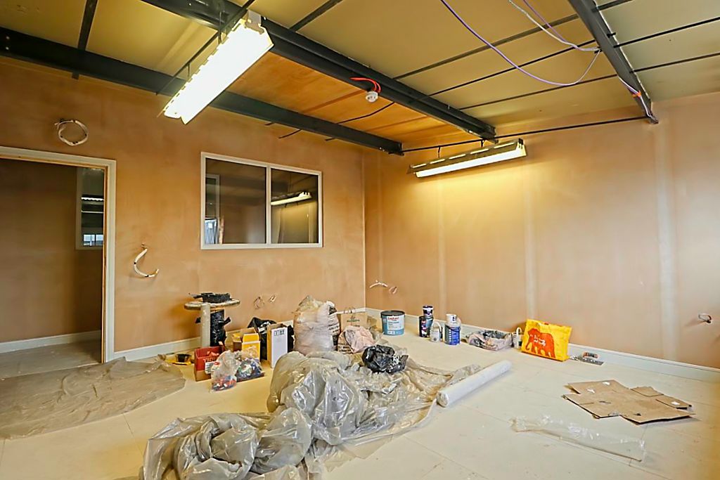 Double glazed window to side elevation, panelled walls, exterior steel beams, surface mounted sockets, climate control system.