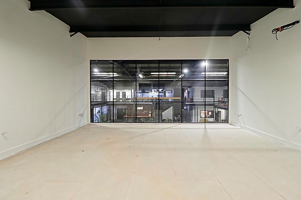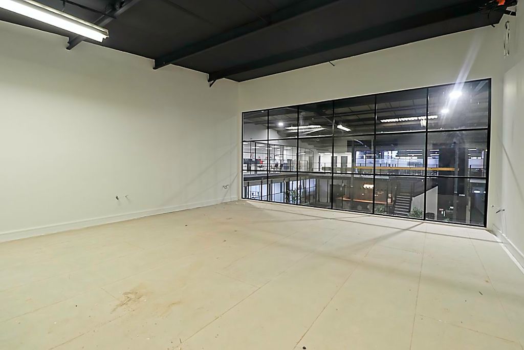 Full height industrial panelled windows to Central Hub, panelled walls, exterior steel beams, surface mounted sockets, climate control system.