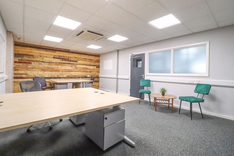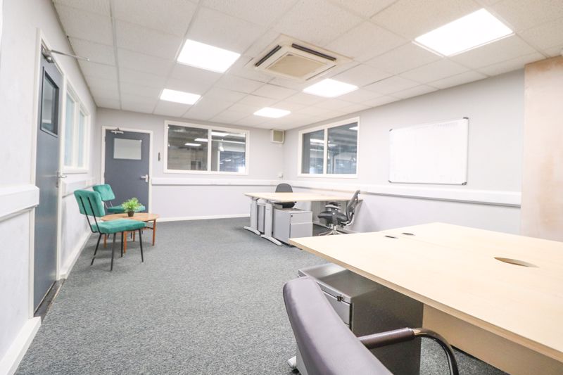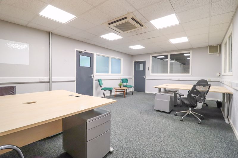 Double glazed window to side aspects, obscure double glazed window rear aspect, corridor, double glazed panelled door to rear corridor, pallet wall, multiple sockets and Internet connections, lighting, carpet flooring. (2 double desks and reception area)