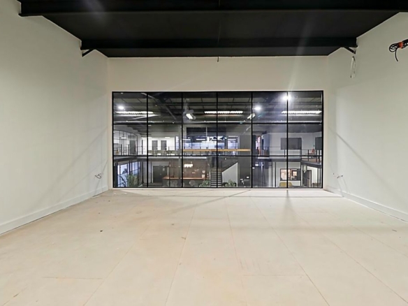 Full height ceiling with exposed beams, sky lights letting in natural light, industrial style iron frame windows, Cafe with seating area, doors leading to W/C’s, meeting & training rooms, multiple community facilities, kitchen areas, Hot desk area with all IT points.