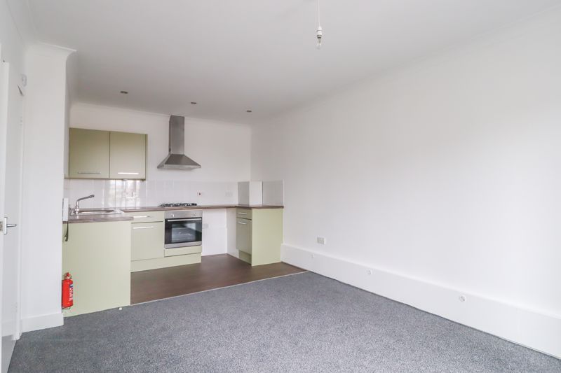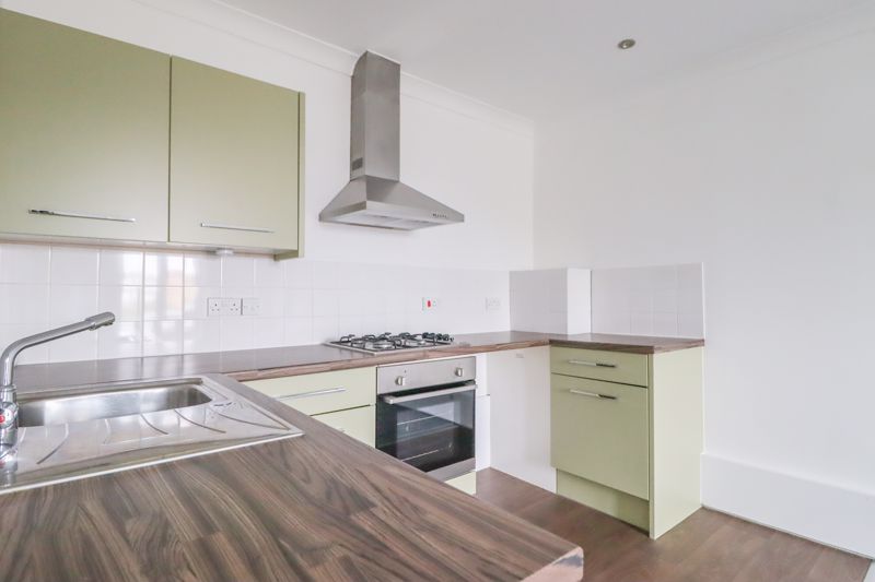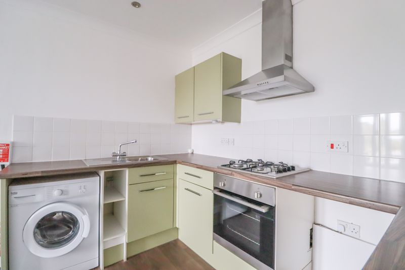Wood effect flooring, smooth ceiling, roll top work surfaces, splash back tiles, 4 point gas hob with extractor, integrated oven, space for plumbing and appliances, washing machine, fitted with a range of wall & base units, sink & drainer,