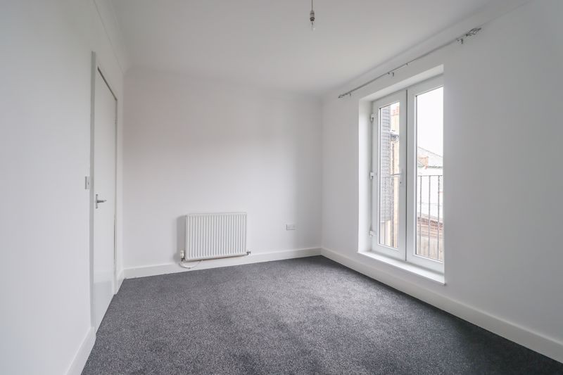 Carpet flooring, smooth ceiling, juliet balcony to rear aspect, radiator.