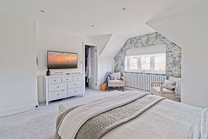 Double glazed windows to rear and side aspects, radiator, fitted wardrobes, smooth ceiling incorporating downlights and speaker system, carpet flooring.