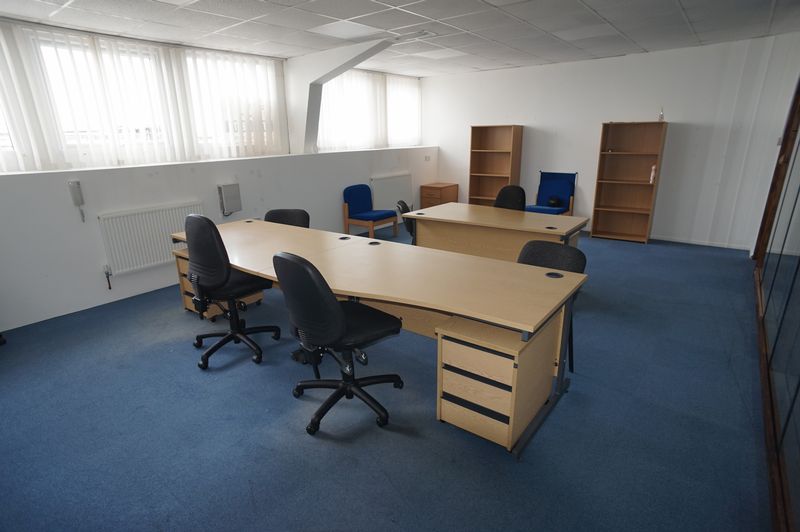 Double glazed windows to side, entry system, office furniture, 2 radiators, carpeted flooring.