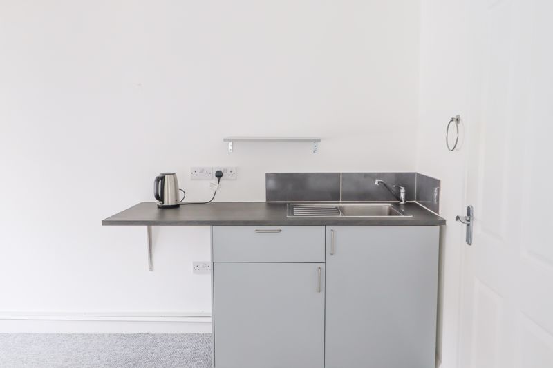 Fitted with a range of base units, space & plumbing for appliances, roll top work surfaces with stainless steel sink & drainer, splash back tiles.