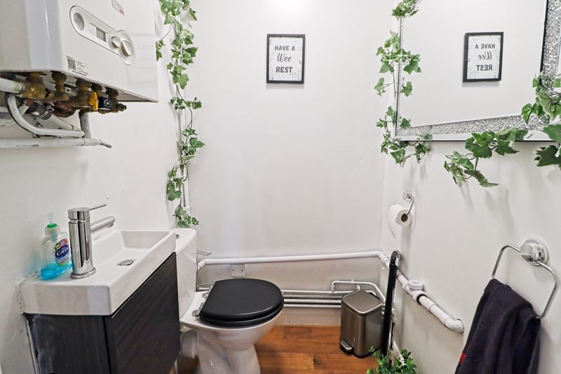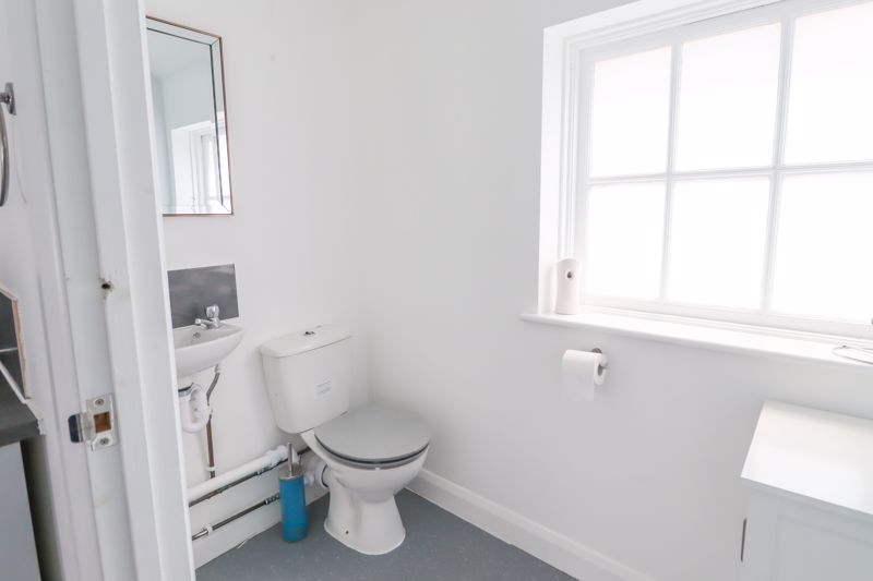 Obscure glazed window to side aspect, wash hand basin, low level WC, extractor fan.