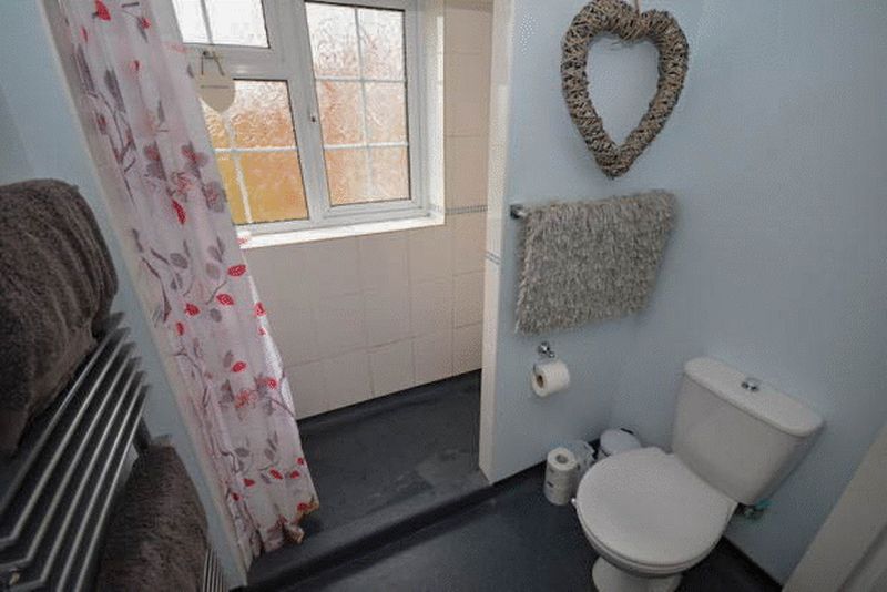 Obscure double glazed window to side aspect, double shower cubicle, wash hand basin in vanity unit, low level W/C, stainless steel heated towel rail, splash back tiling, Vinyl flooring.