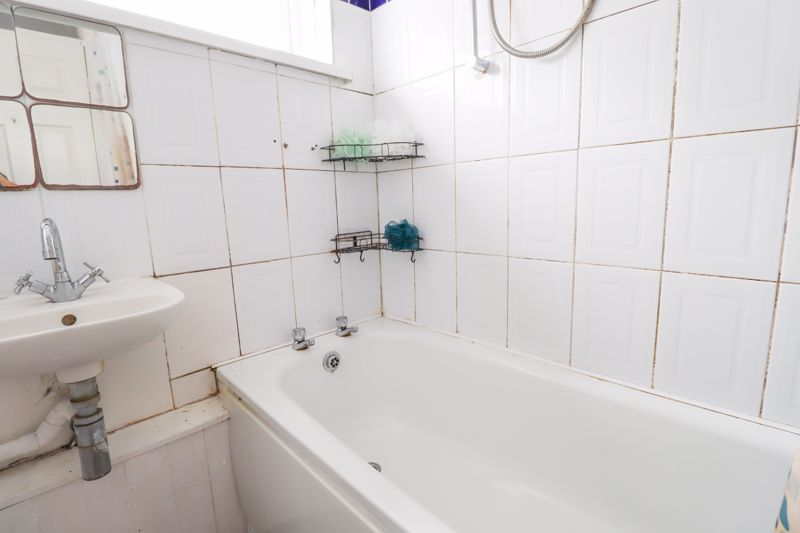 Double glazed window to side aspect, panelled bath with raised shower system over, wash hand basin, tiled walls, textured ceiling, laminate flooring.