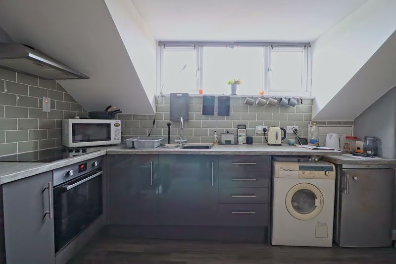 Glazed window to rear aspect, radiator, smooth ceiling, wood effect flooring.