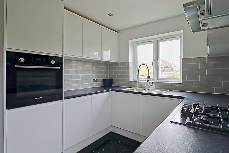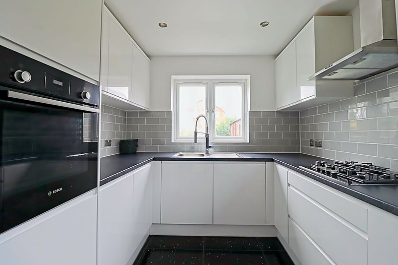 Double glazed window to rear aspect, fitted with a range of base & wall mounted units, fitted oven, space for plumbing & appliances, roll top work surfaces incorporating sink & drainer, four point gas hob with extractor fan over.