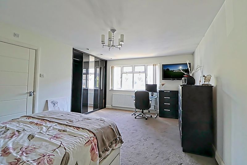 Double glazed window to rear aspect, built in wardrobe with mirrored doors, radiator, carpet flooring, door leading to: