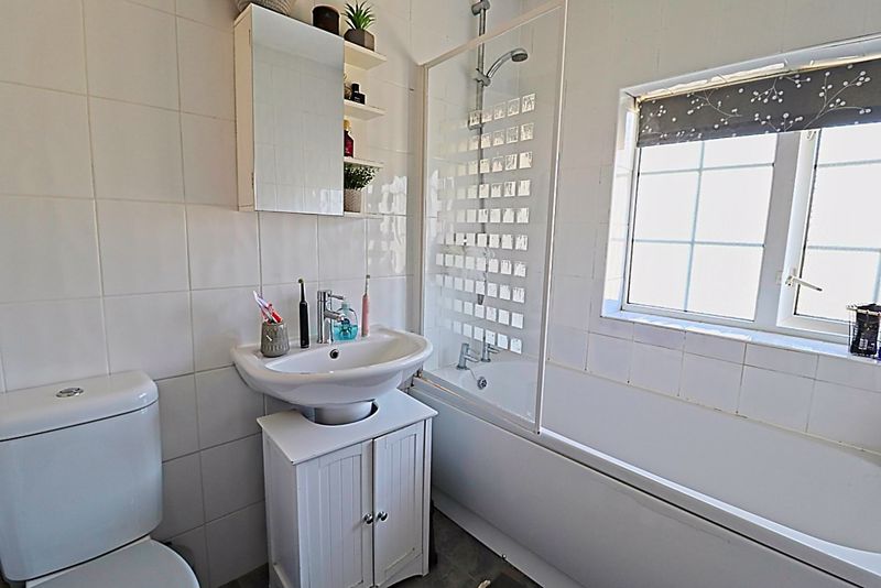 Obscure double glazed window to rear aspect, panelled bath with raised shower system and shower screen, low level WC, pedestal hand basin, heated towel rail, smooth ceiling, complimentary tiling to walls and flooring.