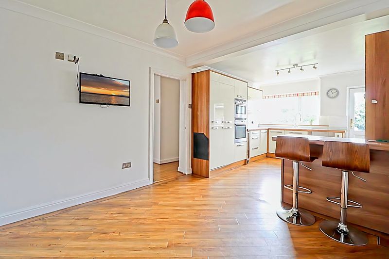 Double glazed window to rear aspect, obscure double glazed window to rear aspect, fitted with a range of base and wall mounted units, work surfaces incorporating sink and drainer unit, fitted gas hob with extractor over, integrated fridge/freezer, dishwasher, wine cooler, Neff oven, microwave and coffee maker, breakfast bar, coving to ceiling, Amtico flooring.