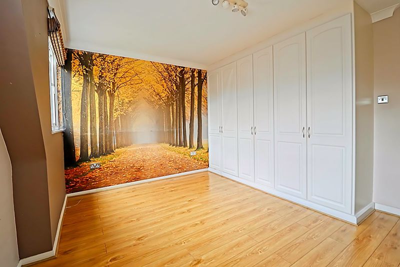 Two double glazed windows to rear aspect, fitted bedroom furniture, radiator, coving to ceiling, wood effect flooring.