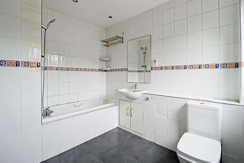 Obscure double glazed window to front aspect, panelled bath, low level WC, hand basin, stainless steel heated towel rail, tile walls and flooring.