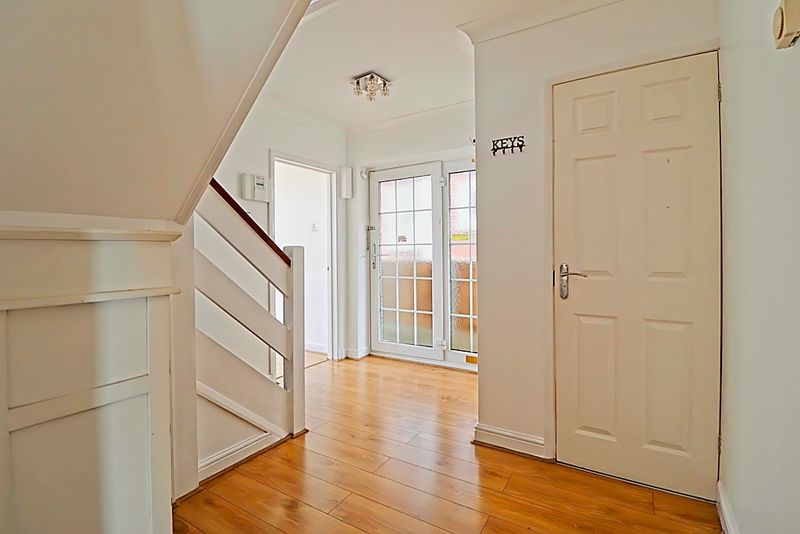 Double glazed window to side aspect, feature radiator, stairs to first floor, under stairs storage area, coving to ceiling, wood effect flooring, doors to:
