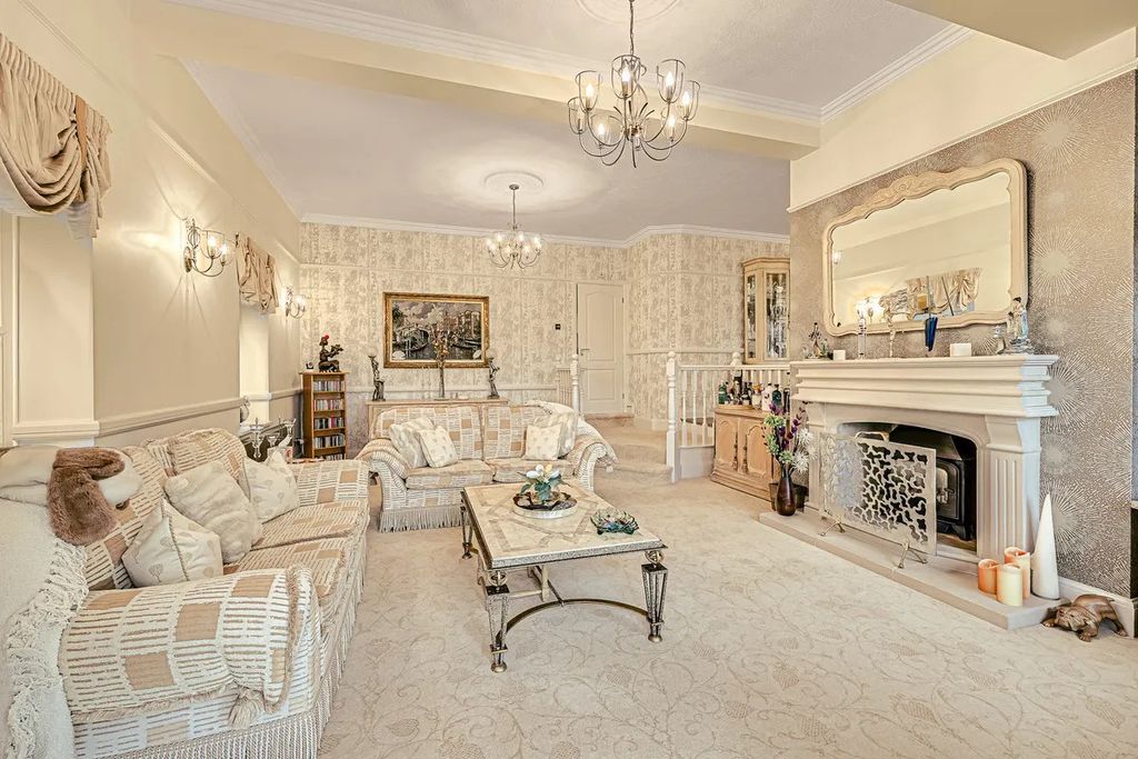 Double glazed windows to rear aspect, further double glazed Oriel windows to side aspect, double glazed French doors to rear garden, feature fireplace with inset gas log fire, two cast iron effect radiators, coving to ceiling, carpet flooring, steps up to: