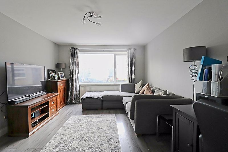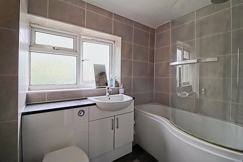 Obscure double glazed window to front aspect, panelled bath with raised shower system and shower screen, vanity unit incorporating hand basin & low level WC with concealed cistern, stainless steel heated towel rail, complimentary tiling to walls, smooth ceiling, wood effect flooring.