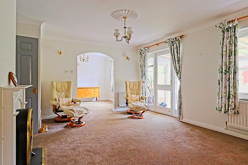 Double glazed window to rear aspect, feature fireplace, two radiators, coving to ceiling, carpet flooring, double glazed panelled door to conservatory, opens to: