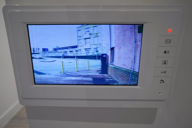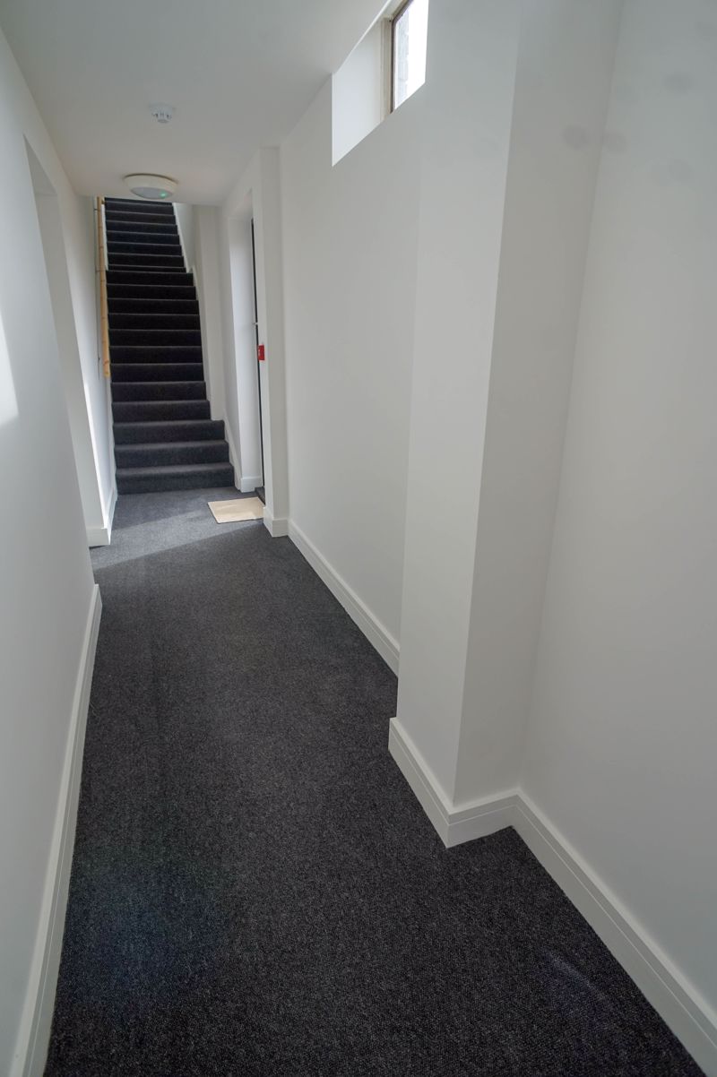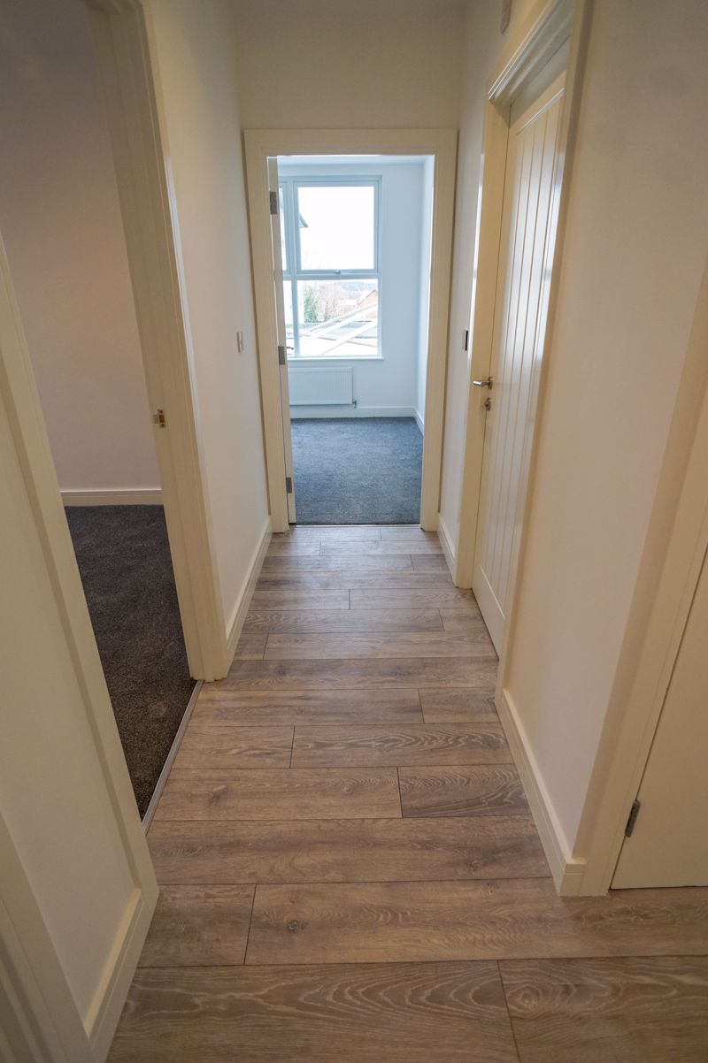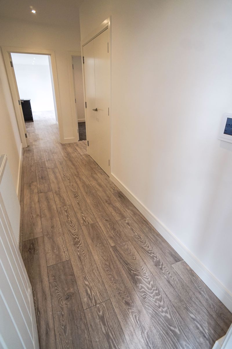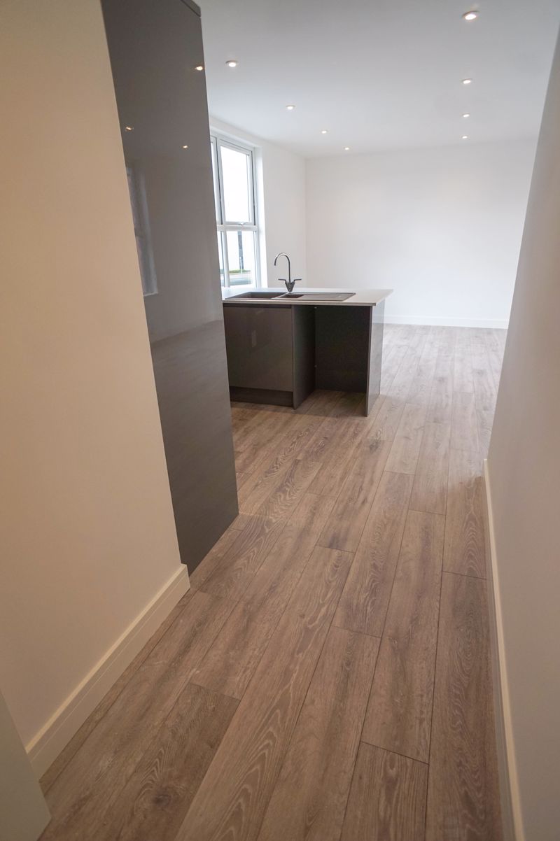 Wall mounted video entry system, two large built in double storage cupboards housing consumer unit system, double radiator, smooth ceiling incorporating LED down lights, wood effect flooring, doors leading to: