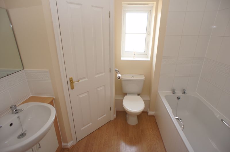 Obscured double glazed window to side, panelled bath, vanity hand basin, low level w/c, airing cupboard, wood effect flooring, smooth ceiling incorporating extractor fan and heater.