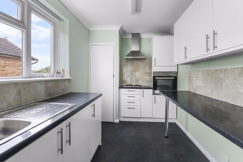 Double glazed window to side aspect, range of fitted wall and base level units, roll top work surfaces incorporating stainless steel sink and drainer unit, four point electric hob with stainless steel extractor fan over, fitted oven, space and plumbing for appliances, splash back tiling, built in storage cupboard, radiator, coving to smooth ceiling.